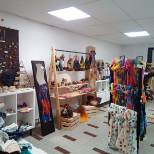 Une grande boutique avec les créations métiers d’art du roannais et de la région, un espace de cours pour découvrir les savoirs faire et l’atelier d’Emmane.